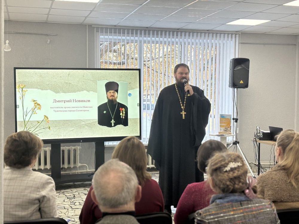 В Солигорской районной центральной библиотеке состоялся вечер духовной поэзии и музыки «Сретенские рифмы», приуроченный к празднику Сретения Господня. В этом году мероприятие проходит девятый раз. Это значимое событие для творческих людей города, которое поддерживает иерей Дмитрий Новиков, настоятель храма Святителя Николая Чудотворца. Стихи, прозвучавшие на вечере, были посвящены Году белорусской женщины.
