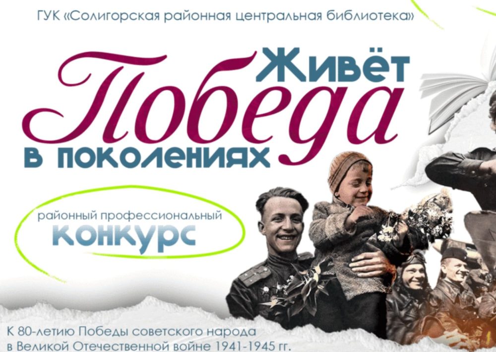 Солигорская районная центральная библиотека объявляет районный профессиональный КОНКУРС «Живёт Победа в поколениях» к 80-летию Победы советского народа в Великой Отечественной войне 1941-1945гг.